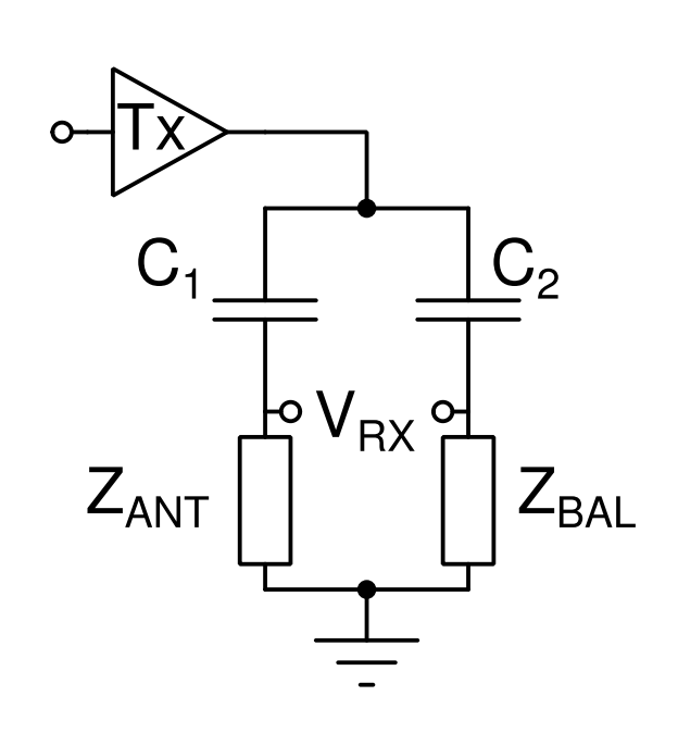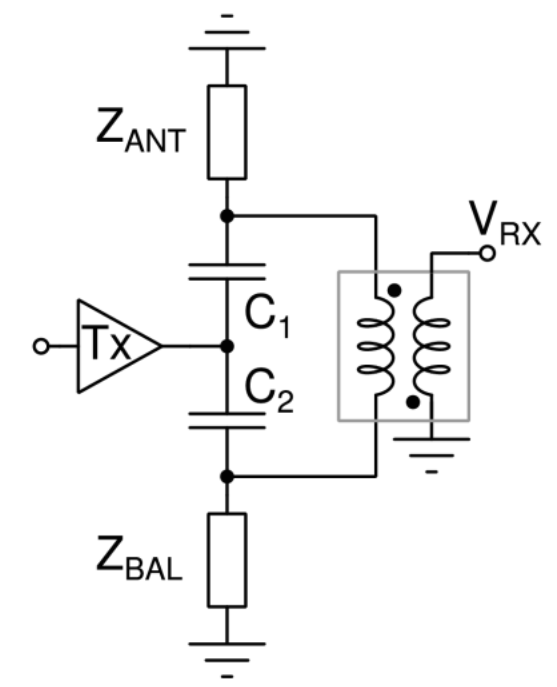 The switches used in Z_BAL must endure the high TX swing seen. They also have to be highly-linear to avoid feedthrough of higher harmonics of TX signal into RX.