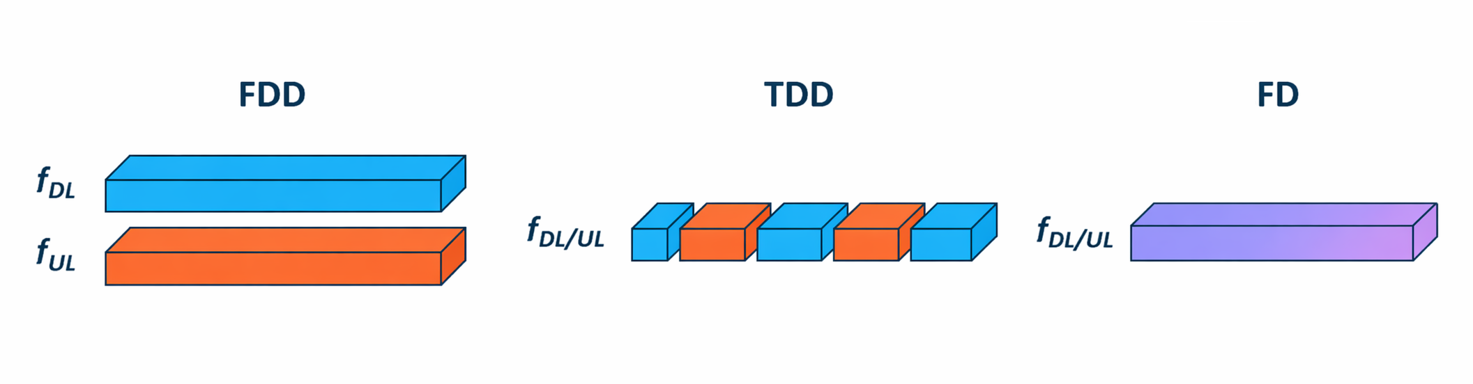 Radios in modern communication systems are classified into time-division duplex (TDD), frequency-division duplex (FDD) and full-duplex (FD). TDD uses the same frequency band but assigns different time-slots for sending and receiving. FDD uses two different bands for simultaneity. FD uses the same band to send and receive at the same time.