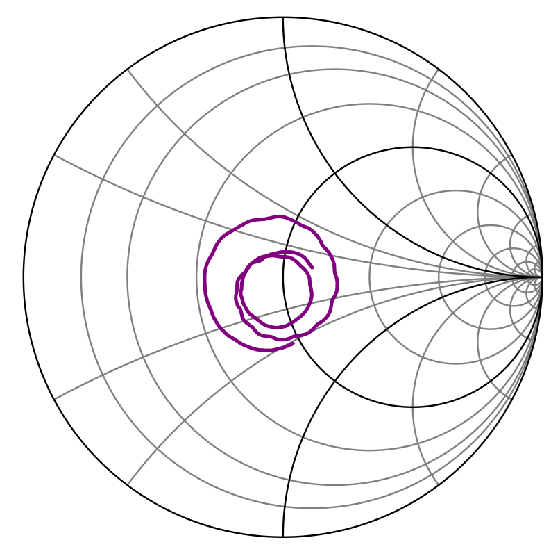 Above is an example of how an Antenna might look in a smith chart. If we plot the real and imaginary parts of the impedance against frequency, this will look like there are multiple peaks and troughs ranging anywhere from 30 to 80 Ohms. What's worse is that the antenna's profile can change with the environment around it. In fact, my personal experience is that just placing a table fan in front of an antenna being measured changes it's profile drastically!